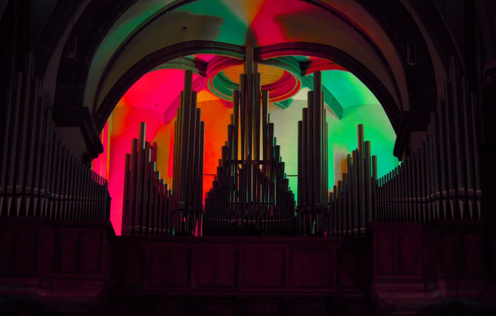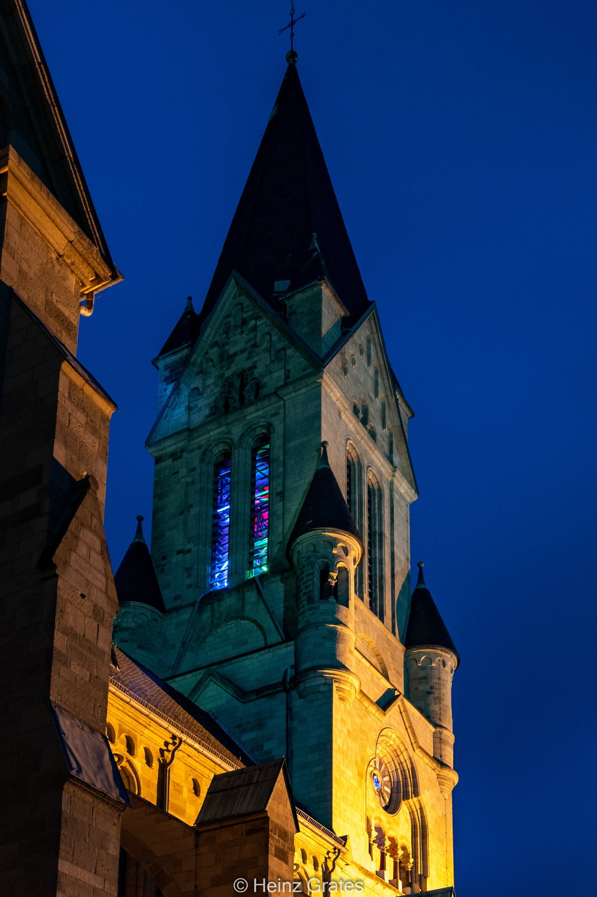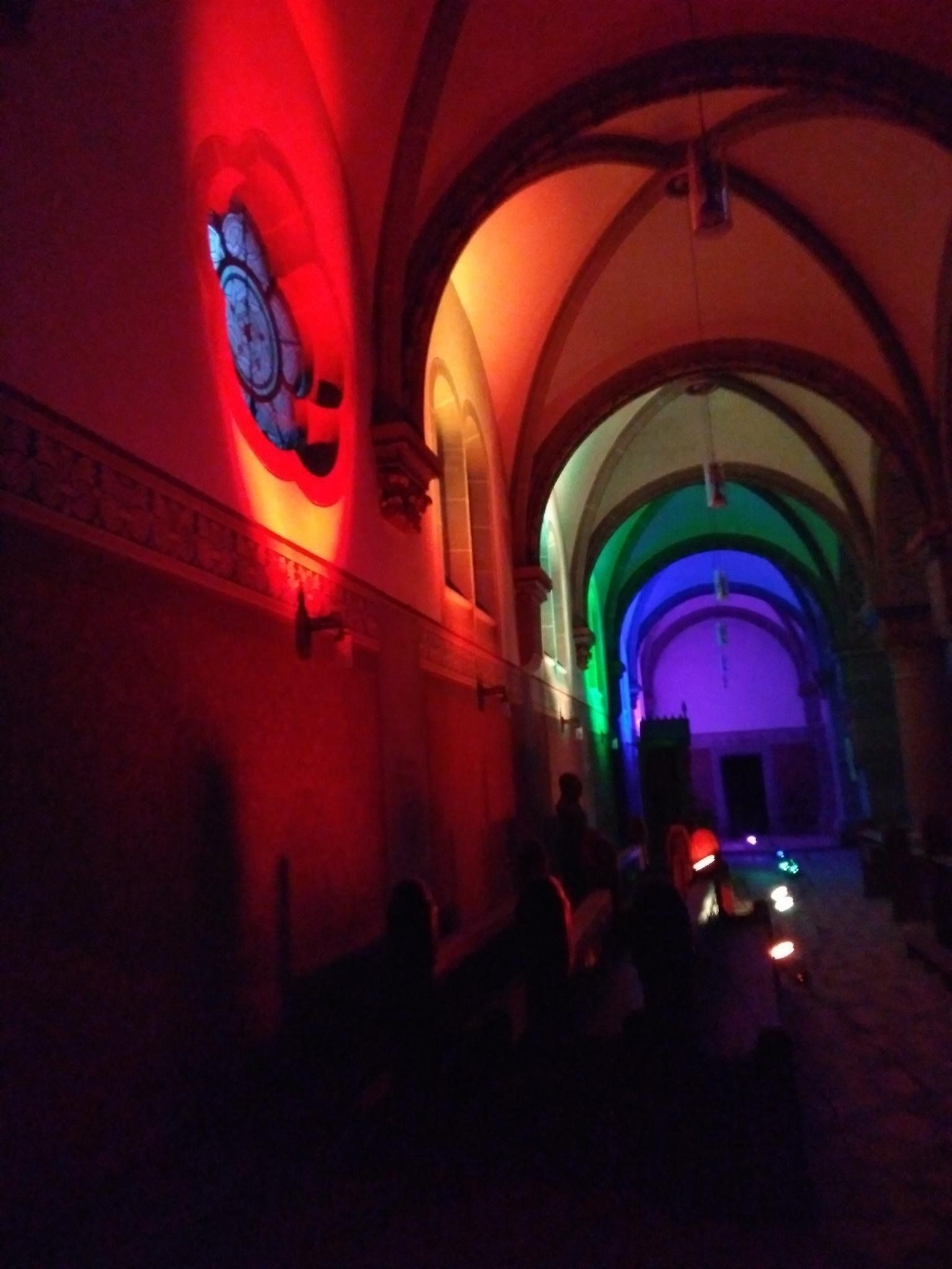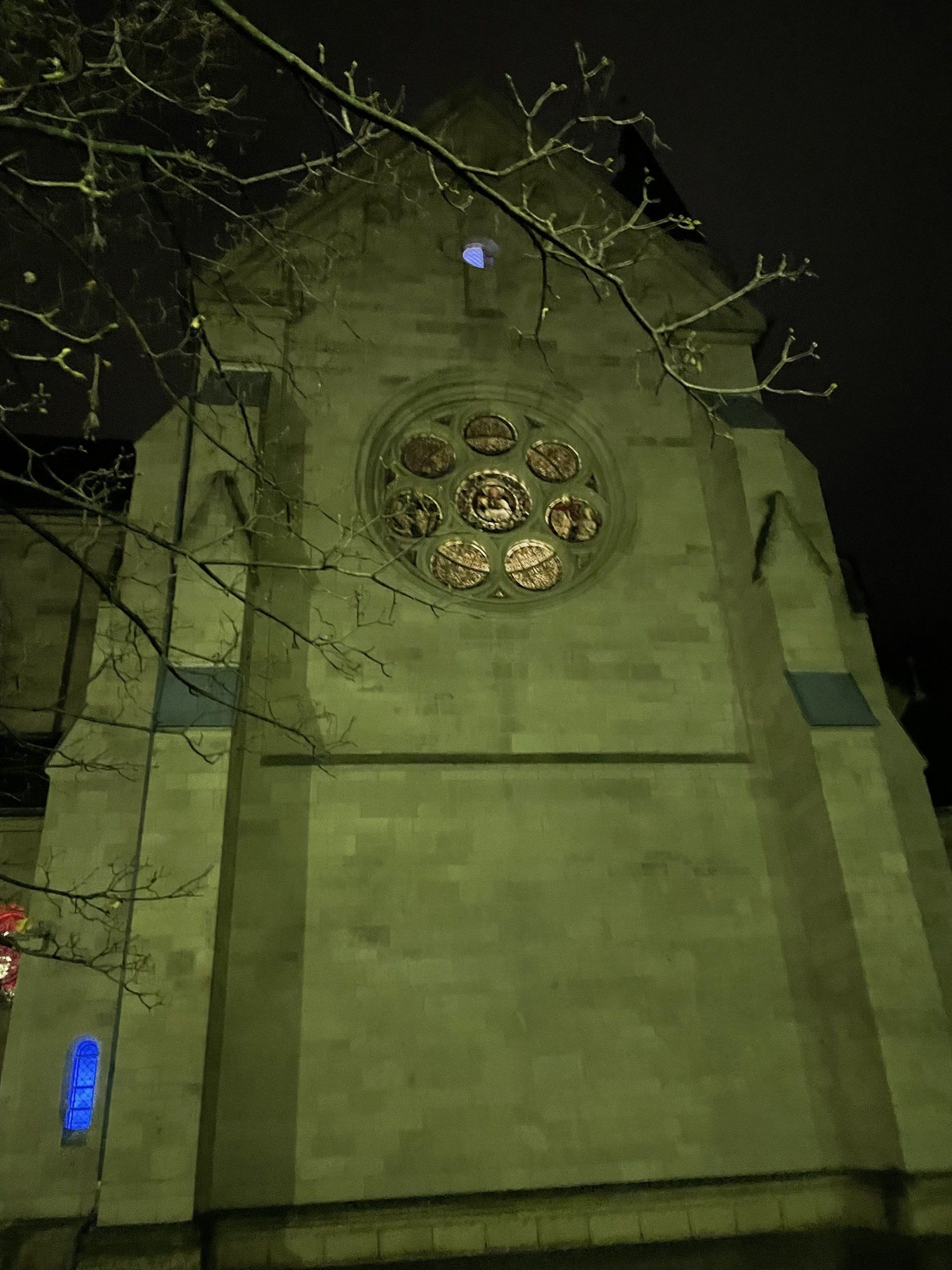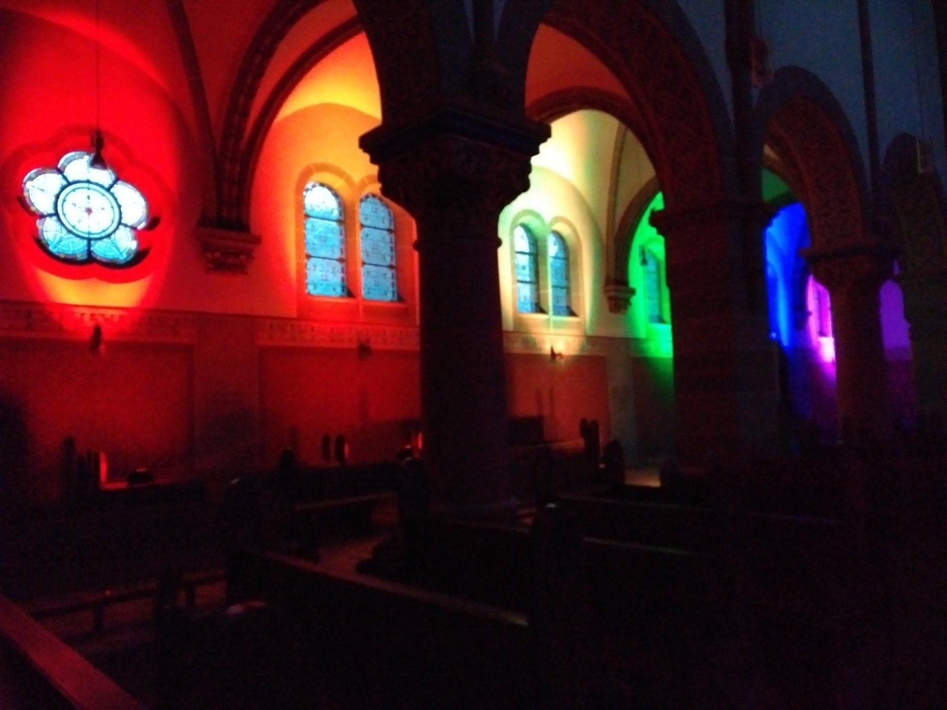 Die Installation in der Rosenkranzkirche in Bad Neuenahr war besonders. Vom 1. Advent 2021 bis Ende Janauar 2022 stählte die Kirche. Über 100 Scheinwerfer haben in einer von der Flut beschädigten Kirche für die Menschen gestrahlt. Es war das größte Projekt von Rafaels Lichtdesign. Eine Installtion zwischen Schäden und Hoffnung.